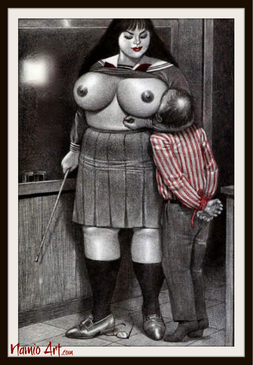 Yes, Namio Harukawa certainly created a lot of smother, queening, and femdom type imagery. However when going through our library we did not find a lot of Boob or Breast Smothering. What we did find we included below.